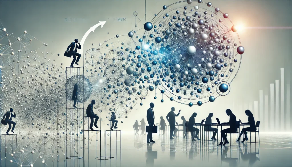 では、このダンバー数がビジネスの世界にどのような影響を与えるのでしょうか?特に、中小企業から大企業へと移行する過程で、個人の働き方や成果にどのような変化が見られるのでしょうか?この記事では、これらの疑問に答えるために、組織の規模が増加するにつれて生じるさまざまな現象を詳しく見ていきます。